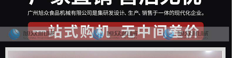 廣州旭眾食品機械有限公司是一家集科研開發,生產設計,營銷服務為一體的現代化生產企業。現代化生產車間,精湛制造技術,所產機械歷經市場重重考驗,不斷贏得海內外客戶的贊譽。