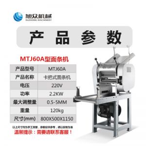名稱60型全自動(dòng)壓面面條機(jī) 電源220v 功率2.2kw 產(chǎn)量60kg/h 尺寸800*500*1150mm 重量120kg 規(guī)格 其他