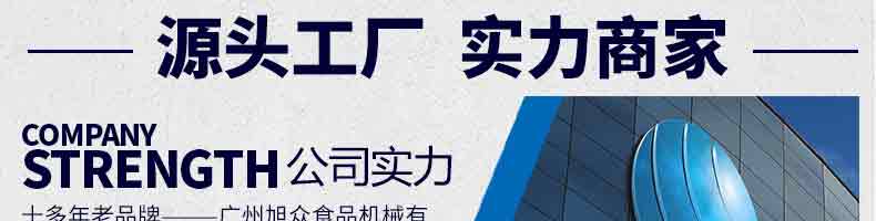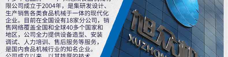廣州旭眾食品機械有限公司是一家集科研開發,生產設計,營銷服務為一體的現代化生產企業。現代化生產車間,精湛制造技術,所產機械歷經市場重重考驗,不斷贏得海內外客戶的贊譽。